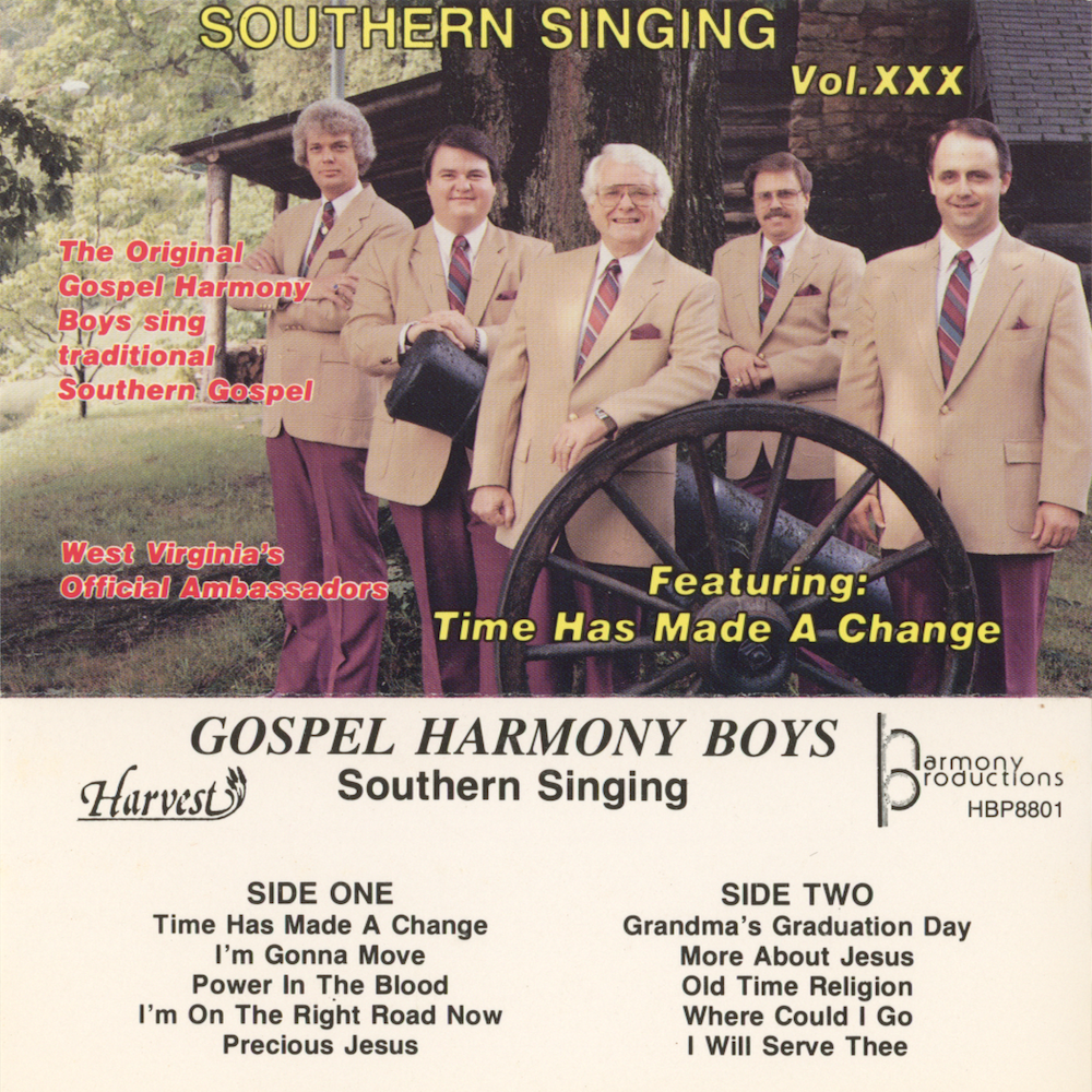 hi-res1988 Southern Singing Volume XXX (Harmony Productions/HBP 8801): Time Has Made A Change; I’m Gonna Move; Power In The Blood; I’m On The Right Road Now; Precious Jesus; Grandma’s Graduation Day; More About Jesus; Old Time Religion; Where Could I Go; I Will Serve Thee (Clacy Williams, Denis Chapman, Steve Black, Homer Fry, Michael Bloomfield).