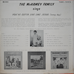 hi-res1979 At Home With The McKameys (Night Watch Records): I'm Gonna Move; The Sun's Coming Up; I Want To Thank You Lord; Sunset Is Coming; What A Time; If The Old Rugged Cross Could Only Talk; Where No One Stands Alone; Keep Moving Along; When We Get There; I'm Going Through Jesus (Sheryl, Ruben, Connie, Peg).