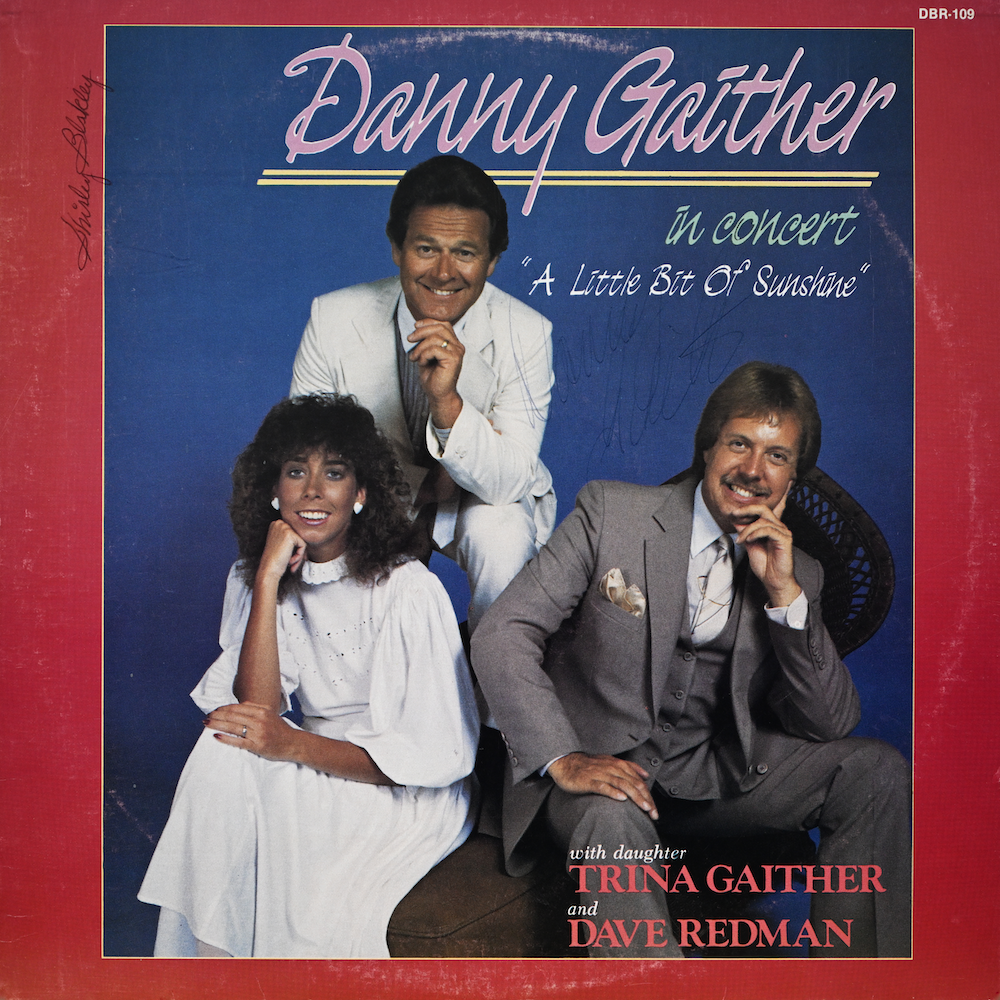 hi-res1983 In Concert - A Little Bit Of Sunshine (Daybreak Records/DBR 109): A Little Bit Of Sunshine; I Could Never Outlove The Lord; Heaven; Longing For Home; All My Hopes; I Lost It All; I Believe It; Big House (Jesus I Heard You Had A); I've Been On The Mountain; God Took Away My Yesterdays; I'll Walk Into That Beautiful Sunset; Going Home (Danny Gaither, with daughter Trina Gaither and Dave Redman).
