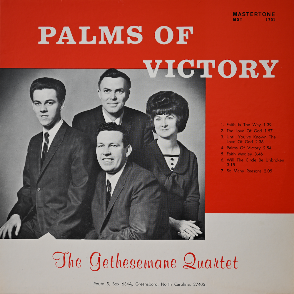 1964 Gethsemane Quartet (Gospel Tone Records): The Old Country Church; I Can Call On Jesus; Love Is Why; This Love Of God; Thanks To Calvary; Because Of Him; I'm Looking For Jesus; God Is My Friend; Praise God; Chilli Jordan; Living By Faith; Heaven's Joy Awaits (Bob Johnson, Penny Andrews, Jeanne Johnson, Floyd Andrews, Earl Brewer).