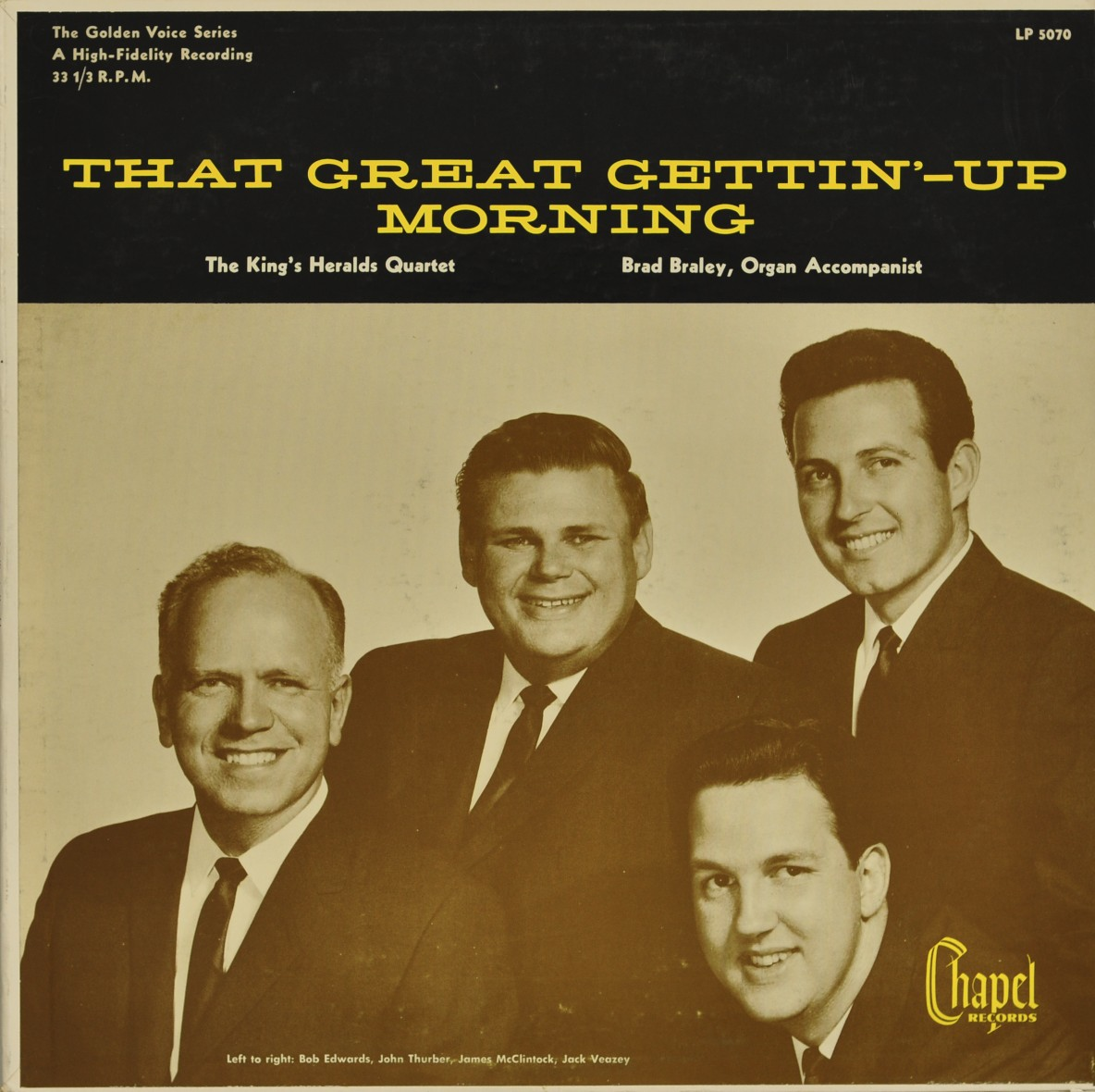 1963 That Great Gettin' Up Morning (Chapel Records/LP-5070/ST-070): That Great Gettin' Up Morning; Steal Away; Little David, Play On Your Harp; Jacob's Ladder; Somebody's Knocking At Your Door; The Crucifixion; Let The Heaven Light Shine On Me; I'll Be There In The Mornin'; Blind Man Stood On The Road; Two Wings; Angels Watchin' Over Me; 'Tis Our Saviour; Were You There (Bob Edwards, John Thurber, Jack Veazey, James McClintock, Brad Braley).