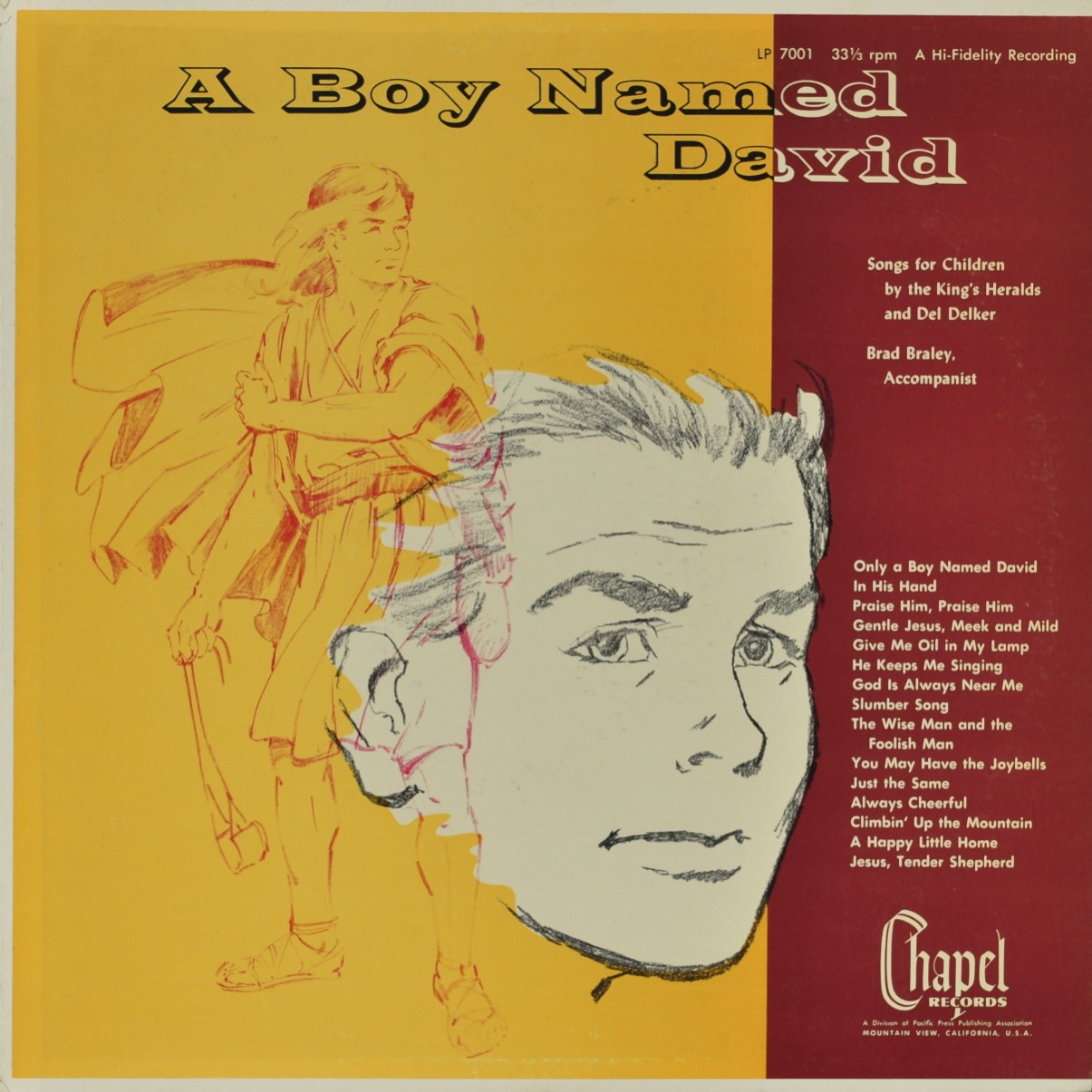 1966 A Boy Named David (Chapel Records/LP-7001): Only A Boy Named David; In His Hand; Praise Him; Gentle Jesus, Meek And Mild; Give Me Oil In My Lamp; He Keeps Me Singing; God Is Always Near Me; Summer Song; The Wise Man And The Foolish Man; You May Have The Joybells?; Just The Same; Always Cheerful; Climbin' Up A Mountain; A Happy Little Home; Jesus, Tender Shepherd (The King's Heralds, Del Delker, Brad Braley).