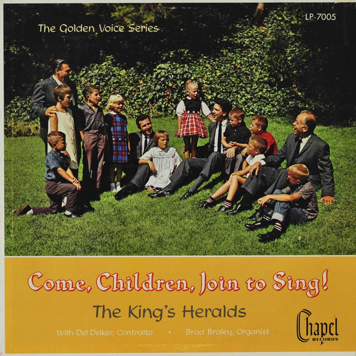 1966 Come Children, Join To Sing (Chapel Records/LP-7005): God Knows; Sermon In Shoes; A Little Talk With Jesus; Kind Words Never Die; Brother Daniel; Singing As We Journey; Like A Little Candle; Brahms's Lullaby (The King's Heralds, Del Delker, Brad Braley).
