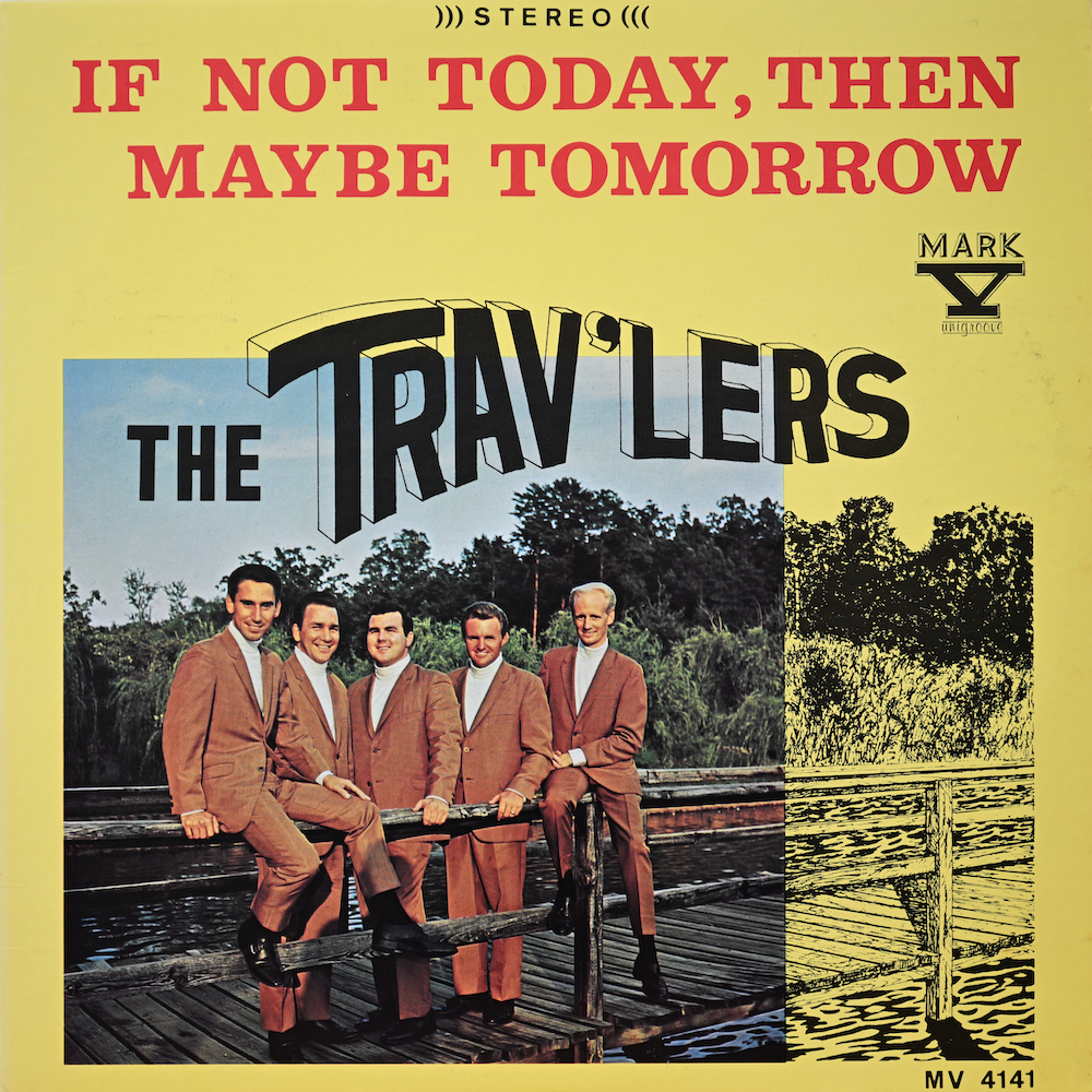 The Trav’lers released their first album with Mark V in 1962, “Songs You’ve Requested”, but were also very busy in other avenues of the endeavors of Mark V. In addition to their full time touring schedule, they were Mark V’s unofficial “staff quartet”, recording television and radio spots, commercial jingles, as well as background vocals for numerous artists, including popular bass singer Bob Thacker and songwriter Marshall Pack. Their involvement with Mark V was extensive enough to the point that it brought about their first membership change in 1965, when Otis Forrest departed to join the Mark V staff full time as studio pianist. Forrest later served a short stint as pianist for the Blue Ridge Quartet, and has produced countless studio recordings and orchestrations since. Replacing Forrest was another very young and soon-to-be-legendary producer, Tony Brown.