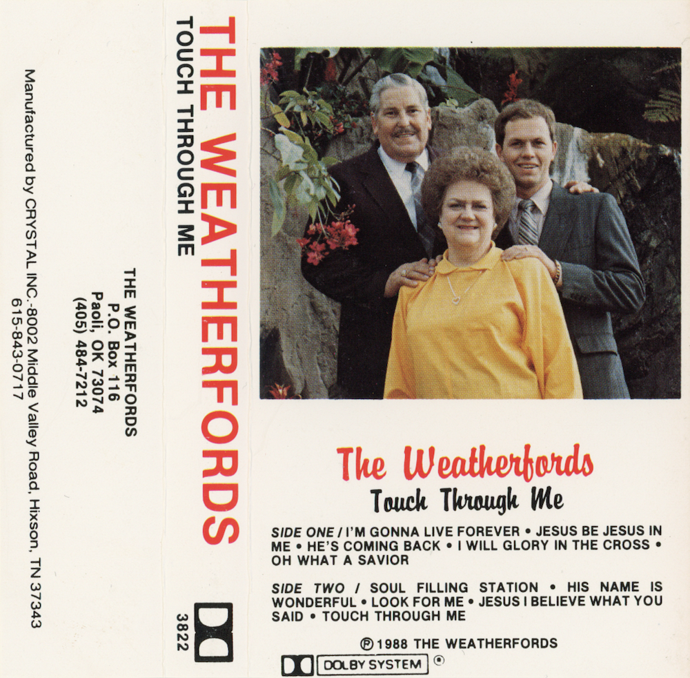 1988 Touch Through Me (Custom Records)/3822): I'm Gonna Live Forever; Jesus Be Jesus In Me; He's Coming Back; I Will Glory In The Cross; Oh What A Savior; Soul Filling Station; His Name Is Wonderful; Look For Me; Jesus I Believe What You Said; Touch Through Me (Earl Weatherford, Lily Fern Weatherford, Steve Weatherford). hi-res