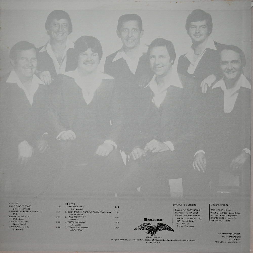hi-res1983 Easy Listening (Encore Records/ELP 683): Old Rugged Cross; Where the Roses Never Fade; Sweeter Each Day; His Hand In Mine; No Place To Hide; Amazing Grace; Don't Take My Burdens Or My Cross Away; I Will Serve Thee; Where Could I Go; Precious Memories (Jeff McNeal, Grady Payne, Earl King, Bill Kitchens).
