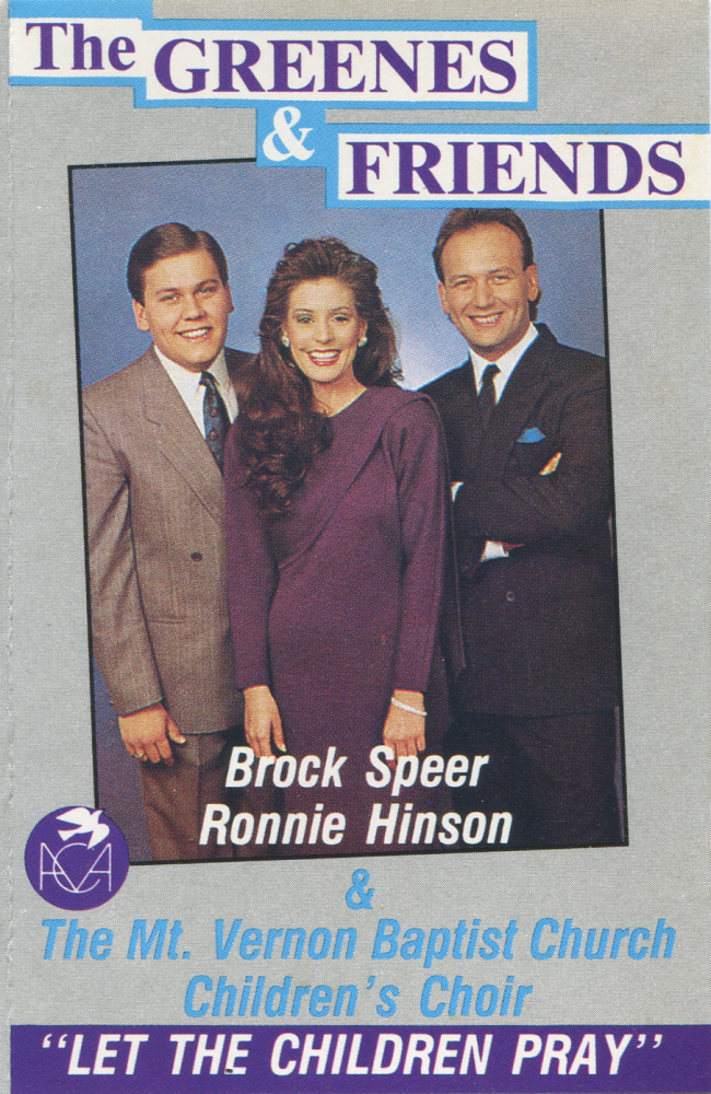 1994 Fields Of Greene (ACA Records/ACA-7777): Get Movin', Fields Of Green; Beautiful Home; My Redeemer; Love Beyond Measure; Out Of The Grave; He's Coming Back; Jesus' Rocking Chair; Let The Redeemed Say So; I Prayed Through Today. (Tony Greene, Amy Lambert, Tim Greene).