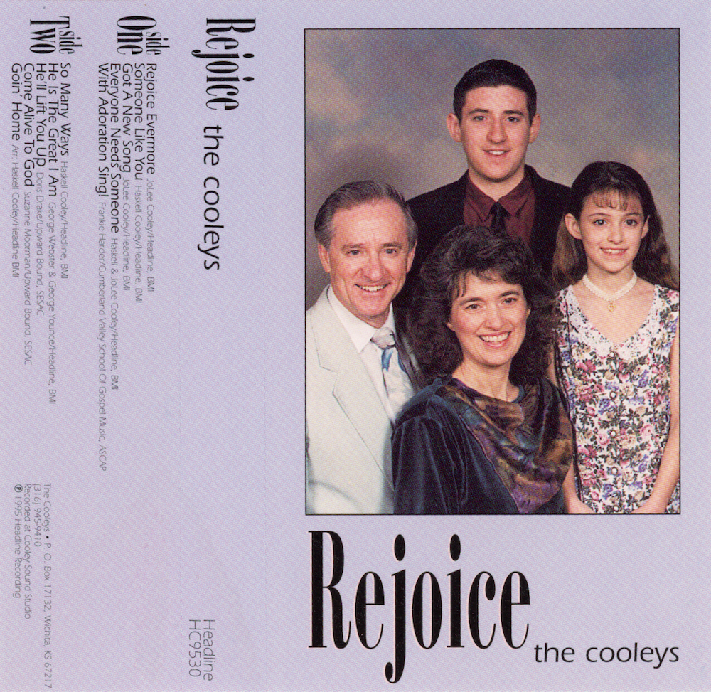 1995 Rejoice (Headline Records/HC-9530): Rejoice Evermore; Someone Like You; Got A New Song; Everyone Needs Someone; With Adoration Sing; So Many Ways; He Is The Great I Am; He'll Lift You Up; Come Alive To God; Goin' Home (Haskell Cooley, Jolee Cooley, Cason Cooley, Camissa Cooley).