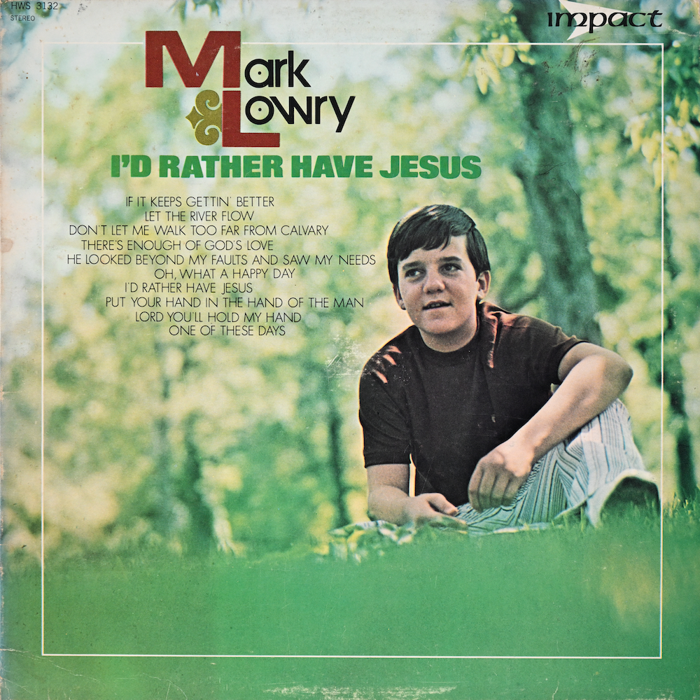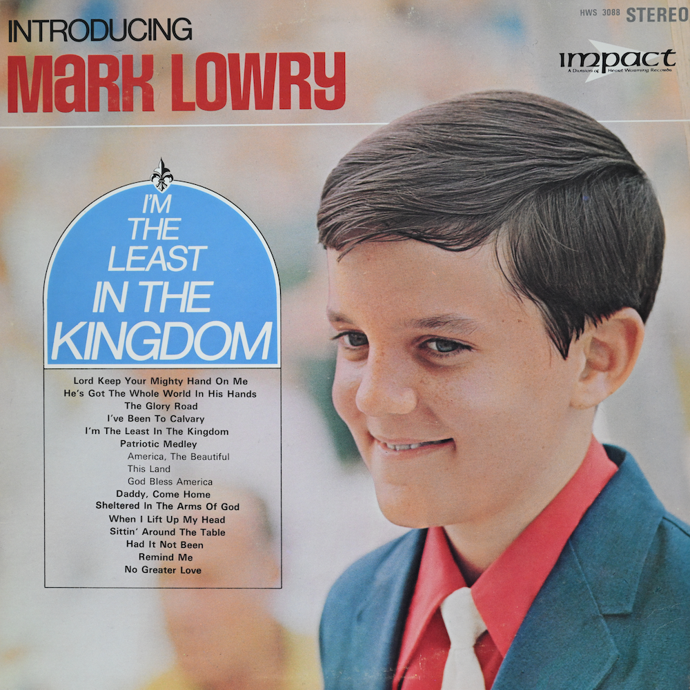 1970 Introducing Mark Lowry: The Least In The Kingdom (Impact Records/HWS 3088) I'm The Least In The Kingdom; The Glory Road; I've Been To Calvary; Remind Me, Dear Lord; Lord, Keep Your Mighty Hand On Me/He's Got The Whole World In His Hands; Sheltered In The Arms Of God; Patriotic Medley: America The Beautiful/This Land Is Your Land/God Bless America; No Greater Love; When I Lift Up My Head; Daddy Come Home; Sittin' Round The Table Of The Lord; Had It Not Been.