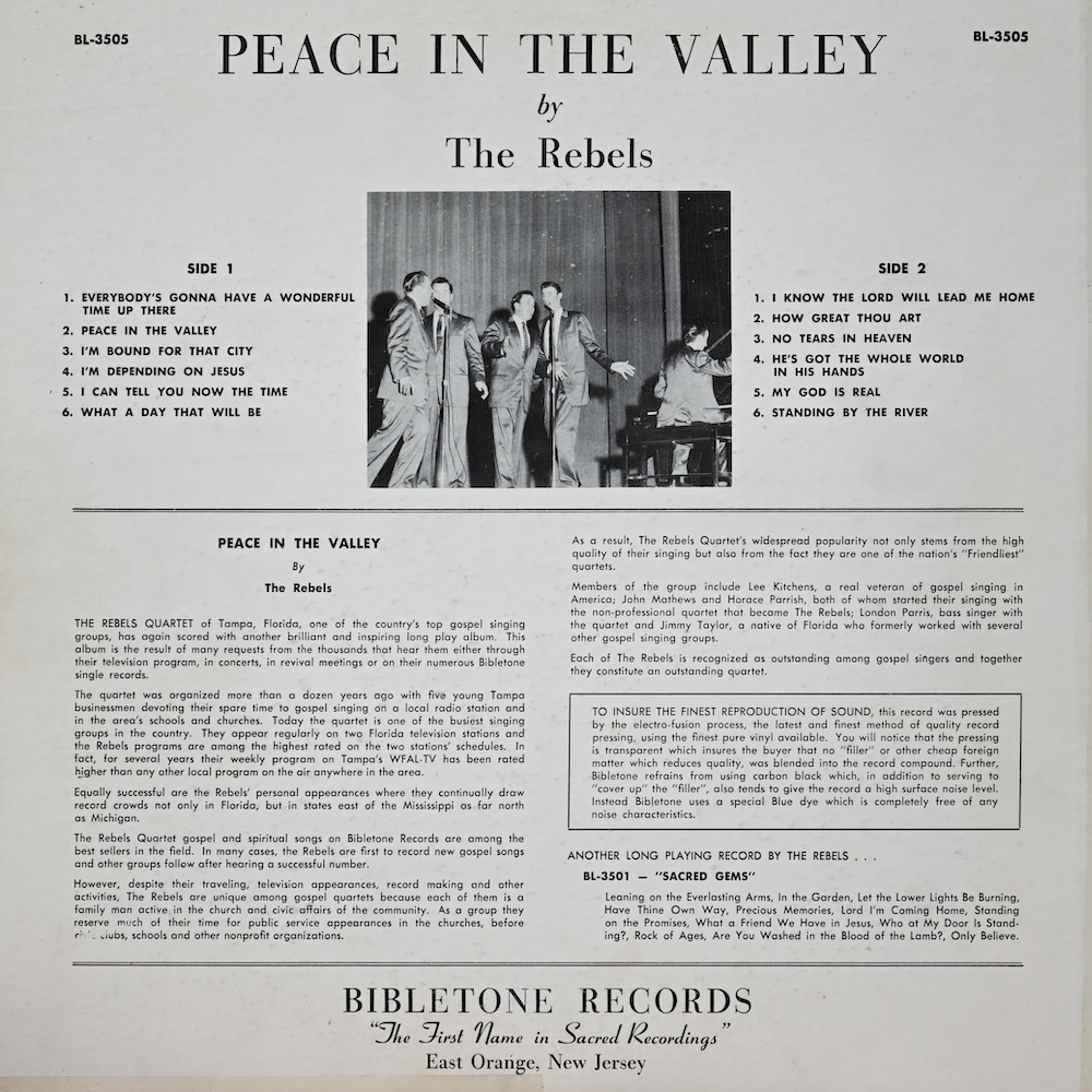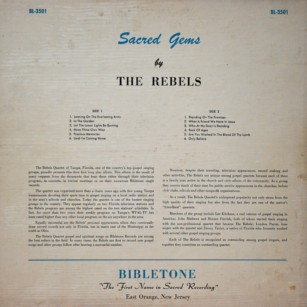 During the mid-1950s, the Rebels recorded for the Bibletone label.